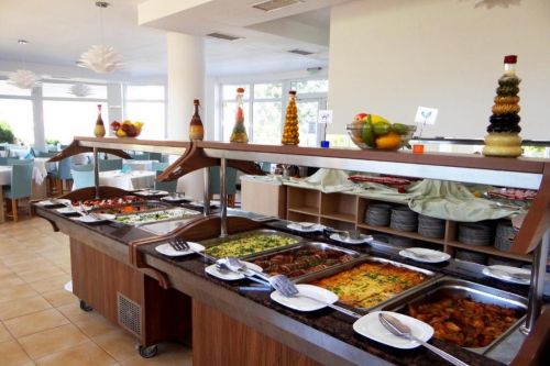 Закуска на бюфет в ресторанта: 08:00 – 09:30 ч. - различни пресни плодове и зеленчуци, сирена, корнфлейкс, кроасани, палачинки, яйца, с включени топли напитки и наливни безалкохолни напитки