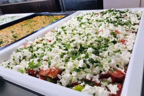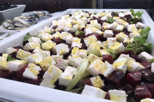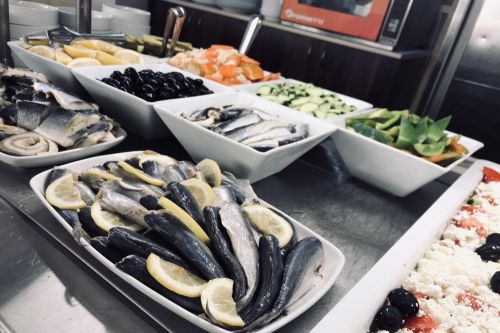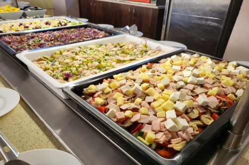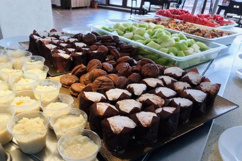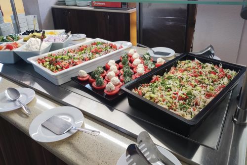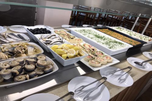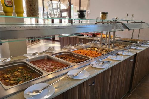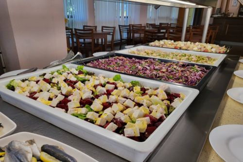 Храна и напитки в ресторант на блок маса, предлагащ голямо разнообразие от ястия от българската и европейската кухня: