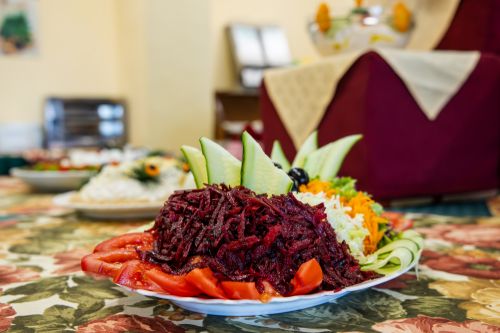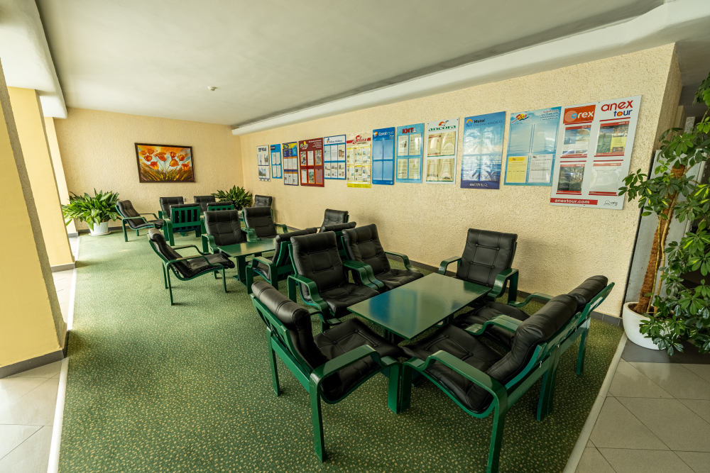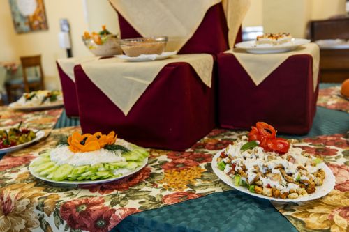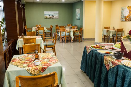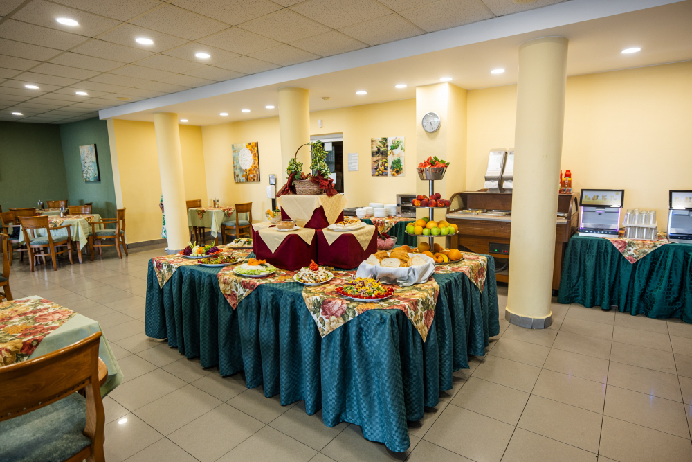 Закуска на бюфет: 07:30-10:00 ч. – топли и студени ястия, яйчени специалитети, печива, сладкиши, плодове и зеленчуци, зърнени закуски, конфитюри и мазане, кафе, чай, сок
