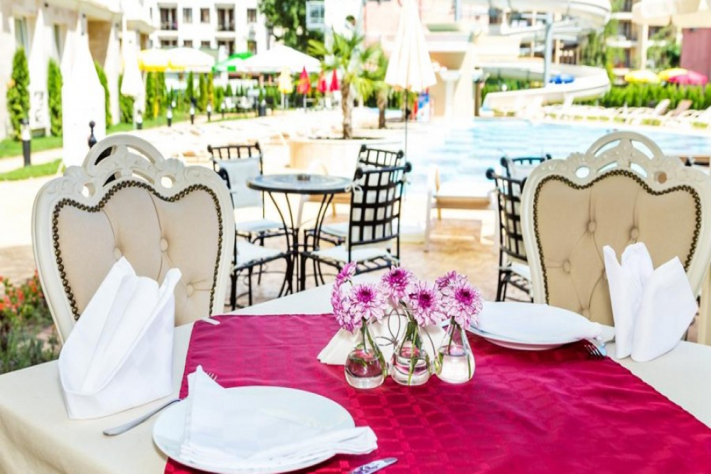 Напитки: Лоби бар - 08:00 – 23:00 ч. и Бар на басейна - 10:00 - 22:00 ч. И двата бара са ол инклузивни.
