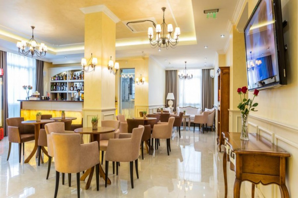 Закуска на бюфет: 7:30 - 10:00 – разнообразие от топли и студени ястия, яйчени специалитети, разнообразие от млечни продукти, колбаси и сирена, селекция от хлебни изделия, зърнени храни, плодове. Напитки: кафе, газирани напитки на кока-кола (кока-кола, фанта, кола без захар, тоник, сода) и вода, сокове негазирани (портокал, ябълка, вишна). Напитките са от машина.