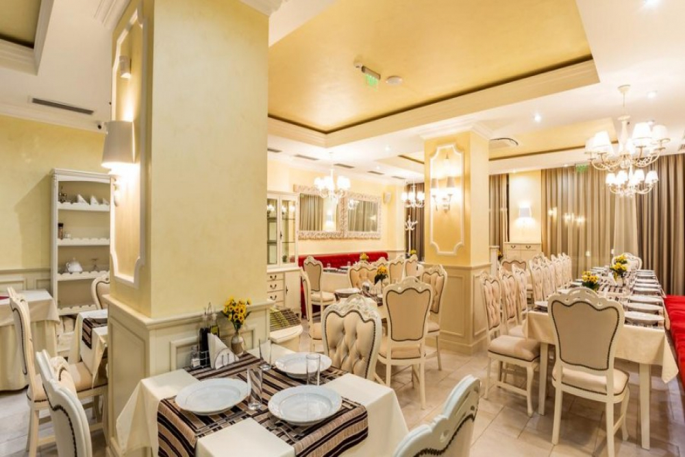 Вечеря на бюфет: 18:00 - 21:00 + селекция от пресни салати и супи, богато разнообразие от български и международни ястия, вегетариански и месни ястия, паста, селекция от хлебни изделия, сладък бюфет с разнообразни десерти. Напитки от машина: кафе, газирани напитки на кока-кола (кока-кола, фанта, кола без захар, тоник, сода) и вода, сокове негазирани (портокал, ябълка, вишна), вино - бяло, розе, червено, + Вегетарианско меню: паста, зеленчуци, ризото, картофи и морска храна.