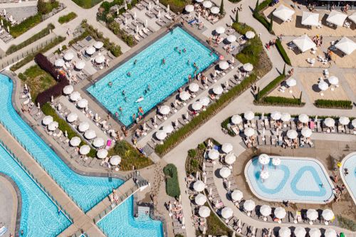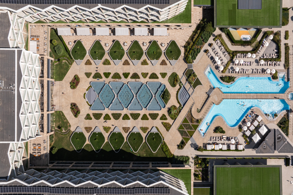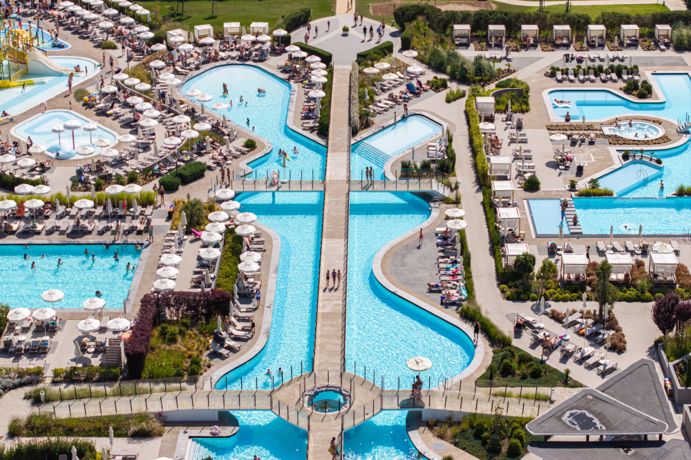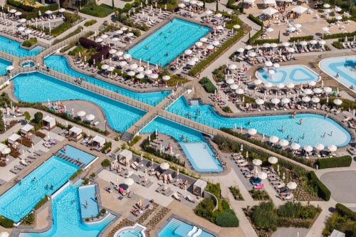Външни басейни: Основен басейн, басейн с полуолимпийски размери (отопляем), инфинити басейн и лагунни басейни с достъп от стаите „Lagoon“.