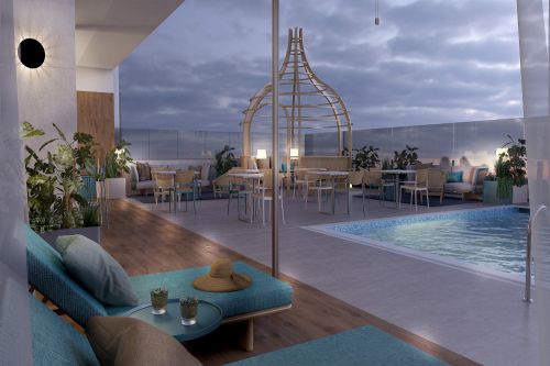 Ползване на бар и басейн на покрива - (вход към басейна, чадър и шезлонги до изчерпване на наличните и включени напитки от бара) / за гостите, които са резервирали стая Екзекютив и ползват Улта Ол Инклузив, ползването на Rooftop bar & Pool с включени напитки е включено в цената /
