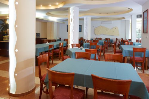 Закуска на бюфет: 07:30-10:00 ч. - домати, краставици, маслини, варени яйца, поширани яйца, масло, конфитюр, сирене, кисело и прясно мляко, сухи и пресни колбаси, бекон, плодове, зърнени храни, десерти, питки, палачинки, сандвичи, хляб, кафе, чай, вода и сок от диспенсър
