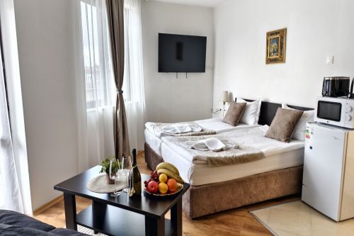 Закуска: 08:00 - 10:00 ч. на блок маса в основния ресторант - разнообразни пресни плодове и зеленчуци, сирена, корнфлейкс, кроасани, палачинки, яйца, студени и топли напитки.