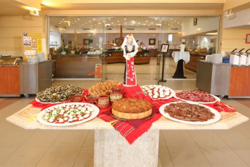 Храна: на блок маса, в основен ресторант „Созопол“ на Холидей Вилидж: