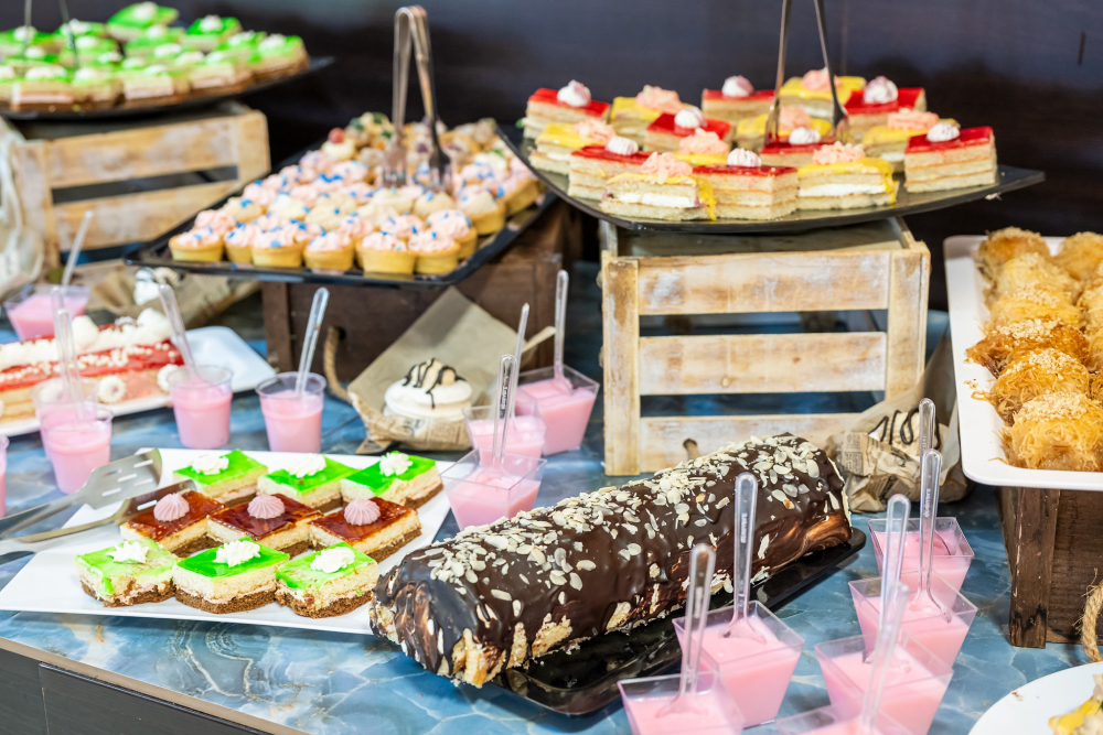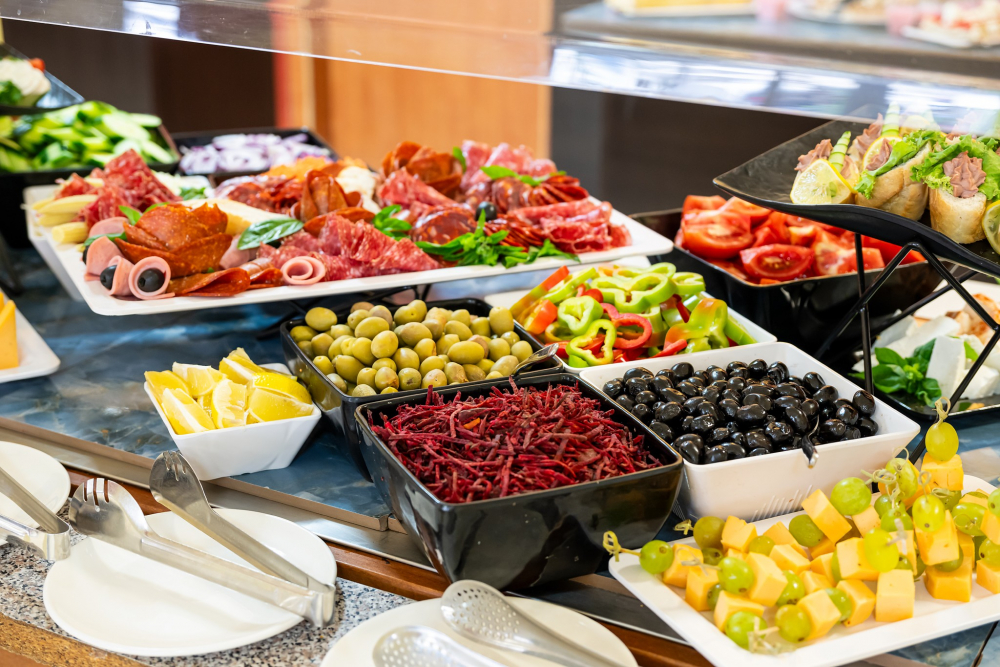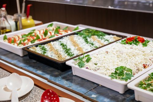 Закуска на бюфет (7:30 - 10:00 ч.) - разнообразие от топли и студени ястия, яйчни специалитети, разнообразни млечни продукти, колбаси и сирена, сладкиши, зърнени храни, плодове. Чай, кафе, вода, сок по време на закуската.