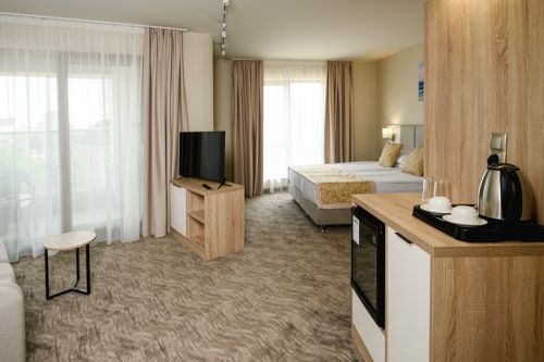 Минибар - безплатно първо зареждане, като комплимент за „добре дошли“, последващо пълно зареждане на минибара (вода, безалкохолно и бира) - срещу заплащане (10 евро/19.56 лв.) и само след заявка на рецепция от страна на госта най-късно до 12 ч. на обяд