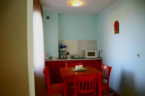 Храна и напитки: Закуска на блок маса: 08:00 – 10:00 ч. - Палачинки, омлети, сандвичи, мюсли, сок, чай, кафе. Вода се предлага срещу допълнително заплащане
