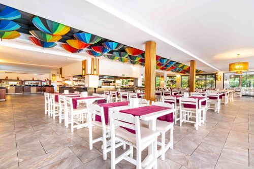 All Inclusive: Закуска, късна закуска, обяд, снек, вечеря на шведска маса, нощна супа - в основния ресторант на хотела; местни алкохолни и безалкохолни напитки – без лимит. Диетично и детско меню.