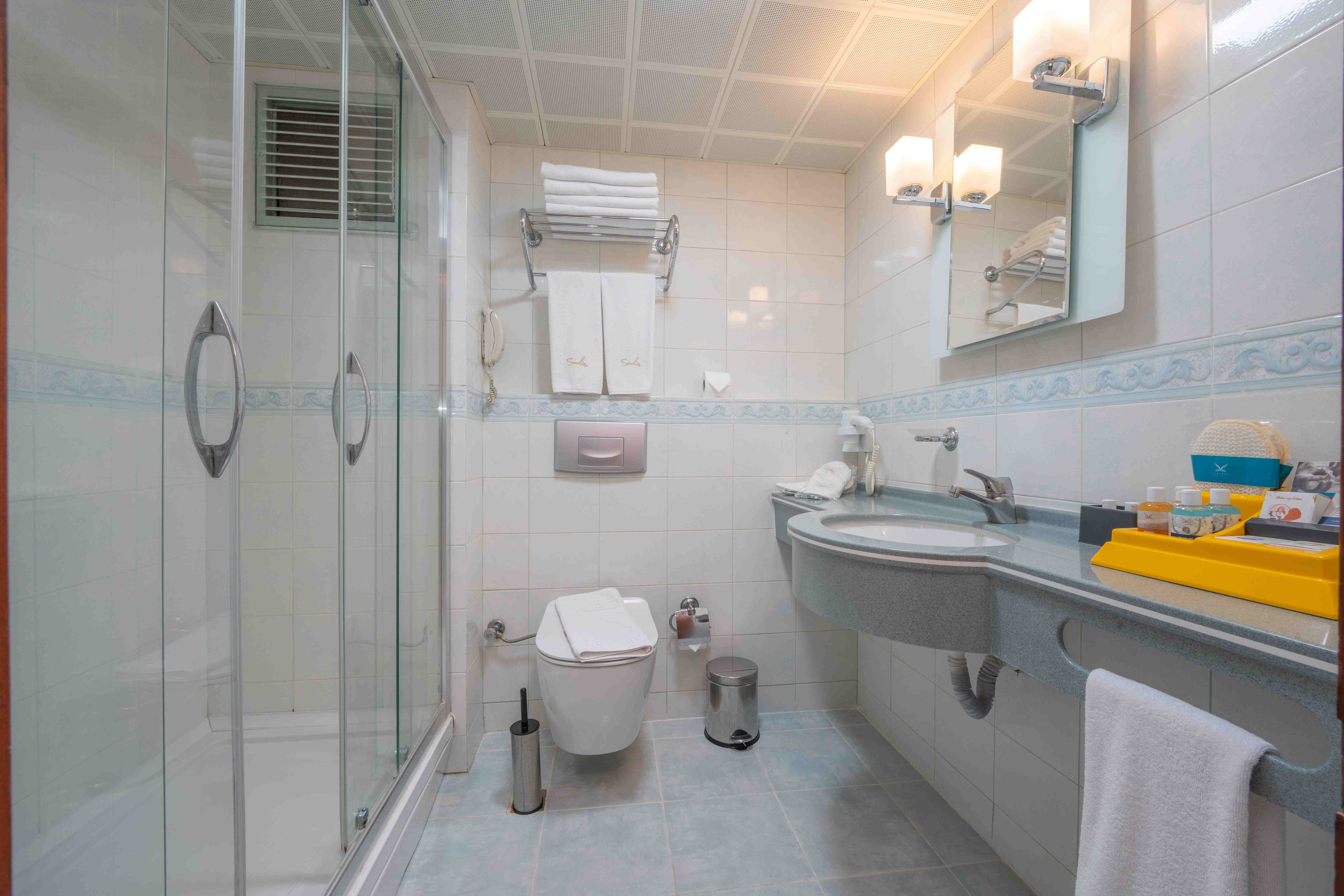 Климатик, телевизор, телефон, балкон, мини бар (празен), сейф (срещу заплащане), баня, сешоар, почистване на стаите - всеки ден, смяна на спалното бельо и хавлии – 3 пъти в седмицата.