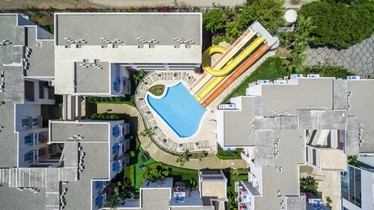 За децата: 2 детски басейна, 2 водни пързалки, детска площадка, мини клуб (4-12г), мини диско, детска анимация.