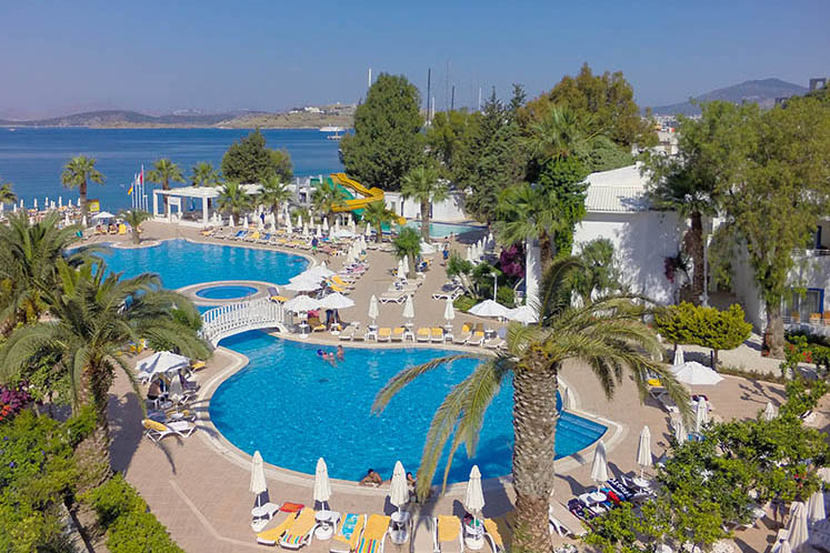 Намира се на 35 км от летище Бодрум, на 1 км от центъра на Бодрум, на брега на морето. Построен 1989 г., на обща площ от 32 000 м². Реновиран 2015 г.