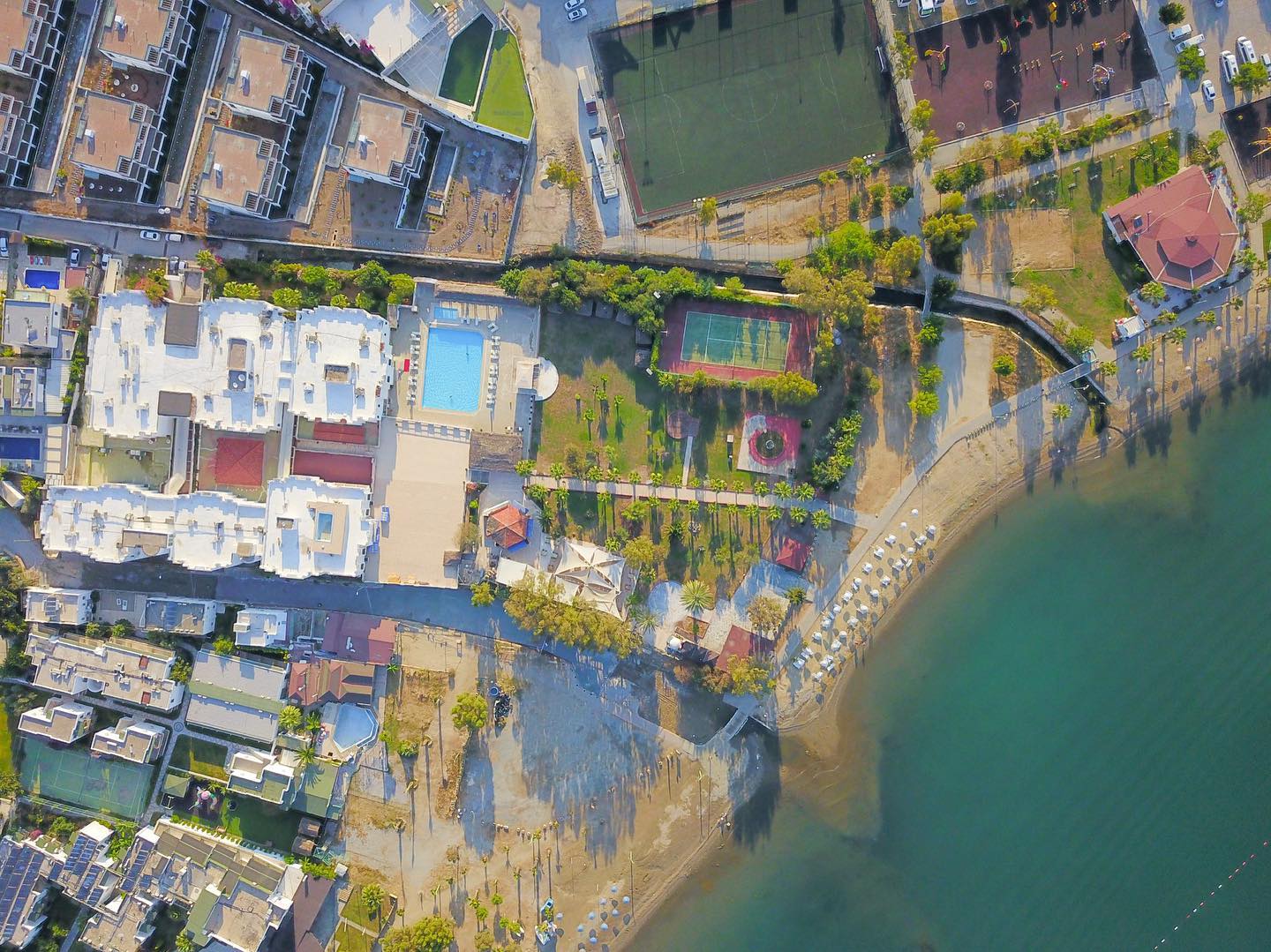 Намира се на 37 км от летище Бодрум, на 3 км от центъра на Бодрум, в района на Гюмбет, на брега на морето. Построен 1994 г. Реновиран 2015 г.