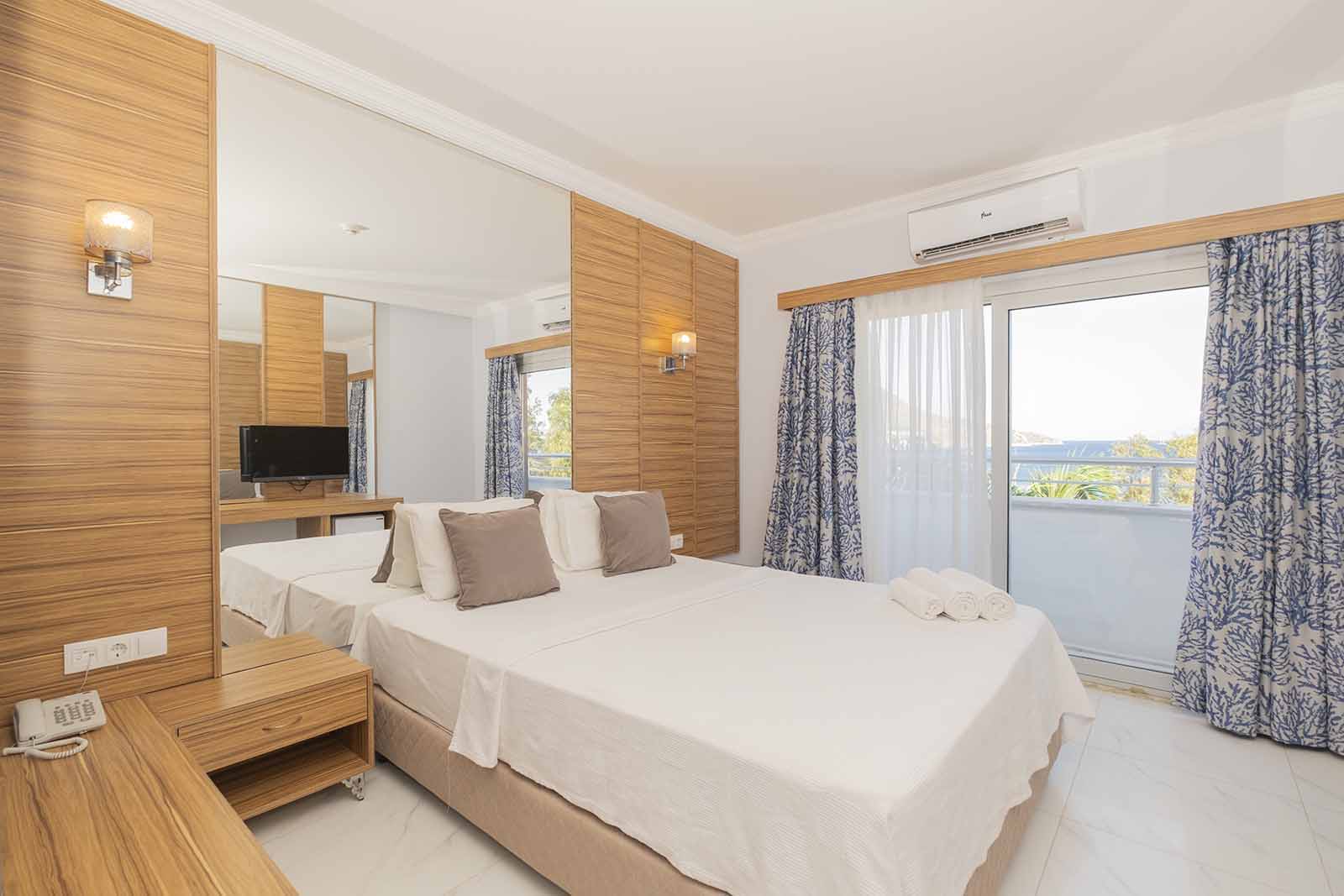 Standard land view (изглед суша, френски балкон - 26 м²), Standard room pool view (изглед басейн, френски балкон - 26 м²), Family room (изглед басейн, 1 спалня, всекидневна, балкон - 50 м²), Swim up family room (с директен достъп до общ басейн, 1 спалня, всекидневна, балкон - 50 м²), Family suite (изглед басейн, 2 спални, всекидневна, балкон - 60 м²), Family suite swim up (с директен достъп до общ басейн, 2 спални, всекидневна - 60 м²).