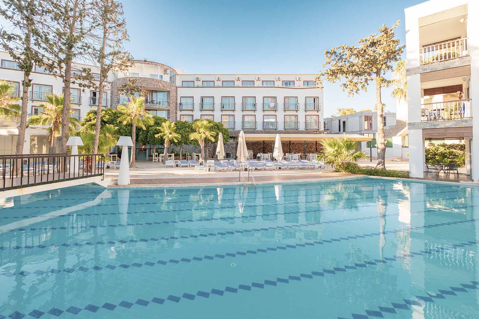 Намира се на 55 км от летище Бодрум - Милас, на 24 км от центъра на Бодрум, на 8 км от центъра на Тургутрейс, в район Акярлар, на 800 м от брега на морето. Построен 2009 г., на обща площ от 12 000 м².