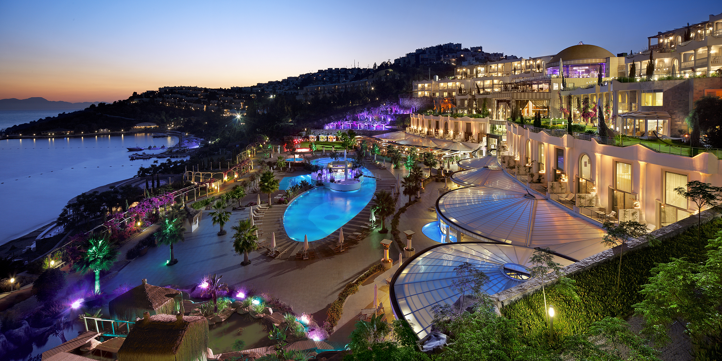 Основен ресторант, 3 а-ла-карт ресторанта (средиземноморски, турски, диетичен ресторант, Детокс ресторант – срещу заплащане), сладкарница, 3 бара, 5 открити и 1 закрит басейн, амфитеатър, СПА център, магазини, паркинг.