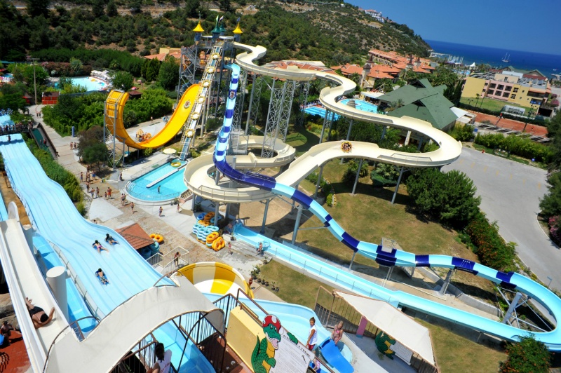 На разположение на гостите на хотела е аквапарк, който разполага с 31 водни пързалки, от които няколко екстремни (Super combo,Screamer, Crazy Raft, Boomerango, Space Bowl и др.), басейн със 7 вида изкуствени вълни, 400 метра дълга Lazy River, Lily Pad - място за срещи на родители и техните деца, а за по-малките деца са налични: голяма детска зона с пиратски кораб с 6 пързалки и интерактивни играчки, комплекс от пързалки „Подводен октопод“, жабешка пързалка и разбития кораб. Основни правила за ползване на Аквапарка: Не се препоръчва за хора с физически увреждания, сърдечни оплаквания и бременни жени. Деца на възраст под 12 години трябва да бъдат придружени от възрастен. Не се допуска използването на някои от пързалките от деца с височина под 120 см. Всички деца под 3-годишна възраст се изискват да носят "swim" памперси. Консумацията на хранa и напитки на теритотията на аквапарка е срещу заплащане.