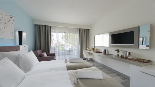 Основна сграда: 49 Deluxe room land view (29-32 кв.м); 21 Deluxe room sea view (29-32 кв.м); 7 Deluxe superior sea view room (разполага с голяма тераса с кът за отдих - 50 кв.м); 2 Handicapped (пригодени за хора с ограничена подвижност); 43 Family suite side sea view (1 стая със спалня, 1 стая с единични легла, 1 баня- 38-45 кв.м); 12 Family suite land view (1 стая със спалня, 1 стая с единични легла, 1 баня - 38-45 кв.м); 1 Senior Suite (50-90 кв. м), 4 Penthouse Suite (50-90 кв. м).