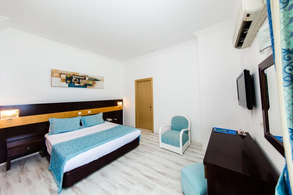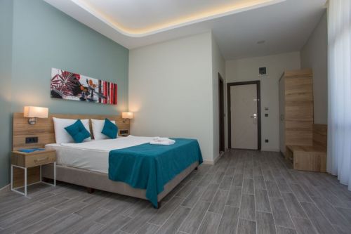 Разполага със 110 стаи, които са разположени в 5-етажна основна сграда Main bilding, от които 95 Standart room (18 м²) и 4 family room (две стаи с плъзгаща врата, баня и балкон, 30 м²), 10 deluxe room, 1 суит. Всички оборудвани с климатик, телевизор, баня с душ или вана, сешоар, минибар (платен), сет за чай/кафе, сейф (безплатен), балкон. По-голямата част от стаите имат невeроятна гледка към морето. Почистване на стаите - всеки ден. Смяна на спалното бельо и кърпите - 3 пъти в седмицата.