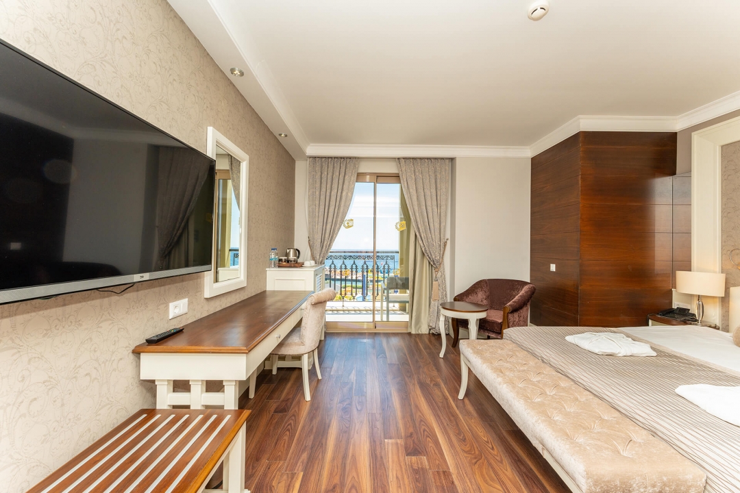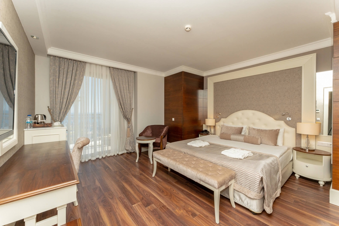 Хотелът разполага с 470 стаи, от които 406 Standard room (с изглед градина, частичен изглед море и изглед море - 29 m²), 50 Family suite (40 с изглед море, 2 спални, 1 баня - 36 m²: 10 с изглед градина, 2 спални, 1 баня - 42 m² ), 9 Royal deluxe suite (с изглед море, 1 спалня, 1 всекидневна, 2 бани - 69 m² ), 4 Laguna suite (с изглед море, 2 спални, 1 всекидневна, 2 бани - 86 m²), 1 Presidental suite (с изглед море, 2 спални, 1 всекидневна, 2 бани, сауна, джакузи - 165m²) и 5 Handicapped (пригодени за хора с ограничена подвижност - 29 m²). Всички стаи са оборудвани с климатик, телевизор, телефон, баня с душ, сешоар, сет за чай/кафе, минибар (ежедневно зареждане с безалкохолни напитки, бира, вода и специално мляко Nesquik за семейства с деца - безплатно), сейф (безплатен), балкон, Wi-Fi интернет. Икономичните стаи са на приземен етаж без балкон. Почистване на стаите и смяна на кърпите - всеки ден, смяна на спалното бельо - 3 пъти в седмицата.
