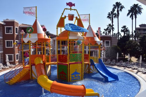 За децата: Детско меню, 2 детски басейна, 3 водни пързалки за деца, детска площадка, мини клуб (4-12 г), мини диско, детска анимация, детско столче, детска количка (под наем).