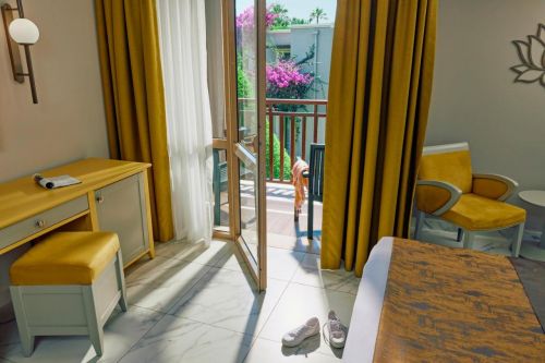 Хотелът разполага с общо 594 стаи, разположени в 20 дву и три-етажни къщички, от които 370 стандартни стаи Standard room (24 м2), 126 стандартни стаи с двуетажно легло Standard Room with Bunk Bed (24 м2), 92 фамилни стаи Family room (2 спални, 1 баня - 46 м2). Всички стаи са оборудвани с климатик, телевизор, телефон, баня с душ/вана, сешоар, чехли, минибар (вода, бира, безалкохолни напитки - безплатно), сейф (безплатен). Почистване на стаите - всеки ден, смяна на спално бельо и кърпи – 3 пъти в седмицата.