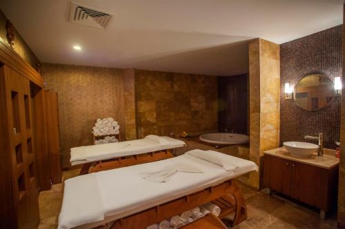 Основен ресторант, 4 а - ла - карт ресторанта, 5 бара, 1 конферентна зала. За децата: Мини клуб(4-11г.), джуниър клуб(12-16г.), детска площадка Безплатни услуги: Фитнес център, сауна, турска баня, дартс, тенис на корт, тенис оборудване, дама, шах, музика на живо, WI-FI (на лоби). Платени услуги: джакузи, Интернет кафе, СПА - център, тенис уроци, водни спортове, телефон, факс ПЛАЖ: Пясъчно - чакълест. Чадъри, матраци, шезлонги и хавлии - безплатно.