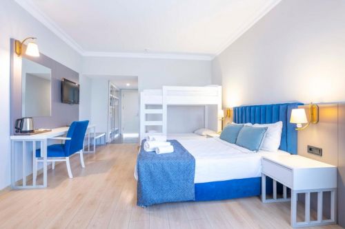 Основен ресторант, 4 бара, 2 открити басейна, 2 водни пързалки, тенис на маса, аеробика, водно поло, дартс, шах, софт анимация. За децата: детски басейн, детска площадка, мини клуб (4-12), мини диско. Безплатни услуги: Сауна, турска баня. Платени услуги: Масажи, пилинг, Спа център, водни спортове, билярд, магазини, рент-а-кар, WiFi интернет. Плаж: на 300 м. от хотела - собствен, пясъчен. Чадъри, шезлонги и кърпи на плажа и при басейна - безплатно.