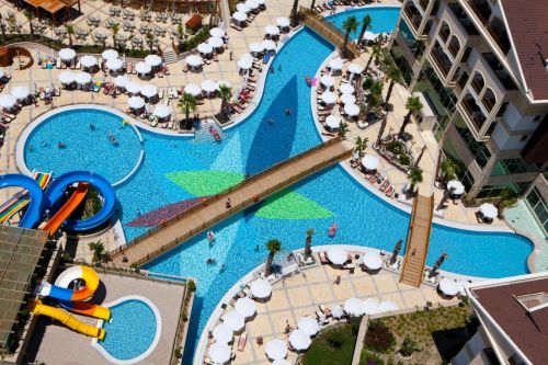 Основен ресторант с диетично и вегетарианско меню, 5 ресторанта a - лa - карт (италиански, турски, рибен, мексикански, китайски), 6 бара, открит басейн, закрит басейн, 3 водни пързалки, кинотеатър, лекарски кабинет, SPA - център, фризьор, магазини,2 конферентни зали. За децата: детско меню, детски басейн, аквапарк, детски мини клуб(4-12г.), младежки клуб(13-16г.) Безплатни услуги: турска баня, сауна, вътрешен басейн, тенис на корт, тенис на маса, дартс, мини голф, баскетбол, фитнес зала, Интернет. Платени услуги: масаж, билярд, боулинг, кан, водни спортове, фризьор, СПА - център.
