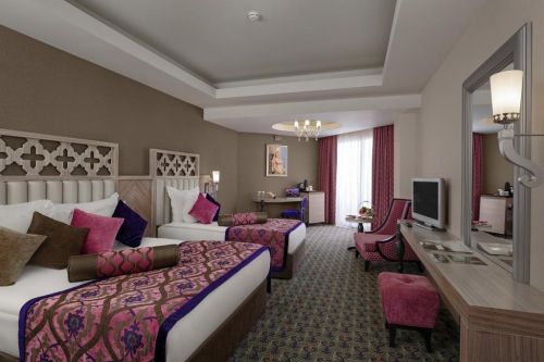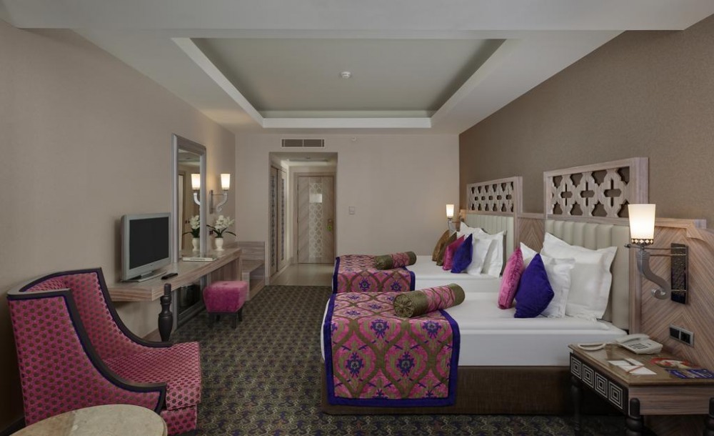 Хотелът разполага с общо 579 стаи, разположени в 6-етажна основна сградa Main building, от които 395 Superior Standard Room (изглед суша, страничен или фронтален изглед море, 40-46 м2), 5 Superior Standard Handicapped room (пригодени за хора с ограничена подвижност - 30 м2), 46 Family Connection Room (2 спални със свързваща врата, двойно и две единични легла, изглед суша или море - 72 м2), 48 Duplex Family Room (2 спални разположени на два етажа, двойно и две единични легла, 2 бани, изглед суша или море - 80 м2), 60 Alhambra Suite (спалня, кът за сядане, изглед море - 63 м2), 22 Junior Suite (спалня с джакузи, всекидневна, 2 бани, изглед море - 70 м2), 3 King Suite (2 спални – едната от които с джакузи, всекидневна, 2 бани - 137 м2).
