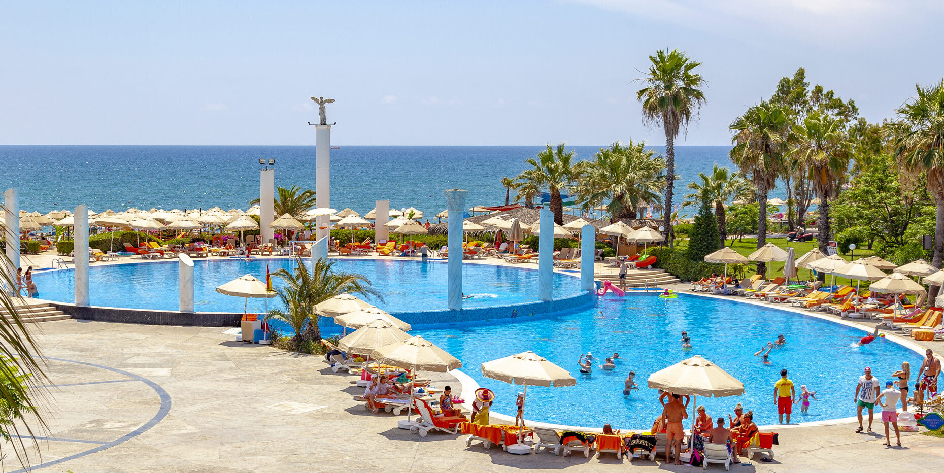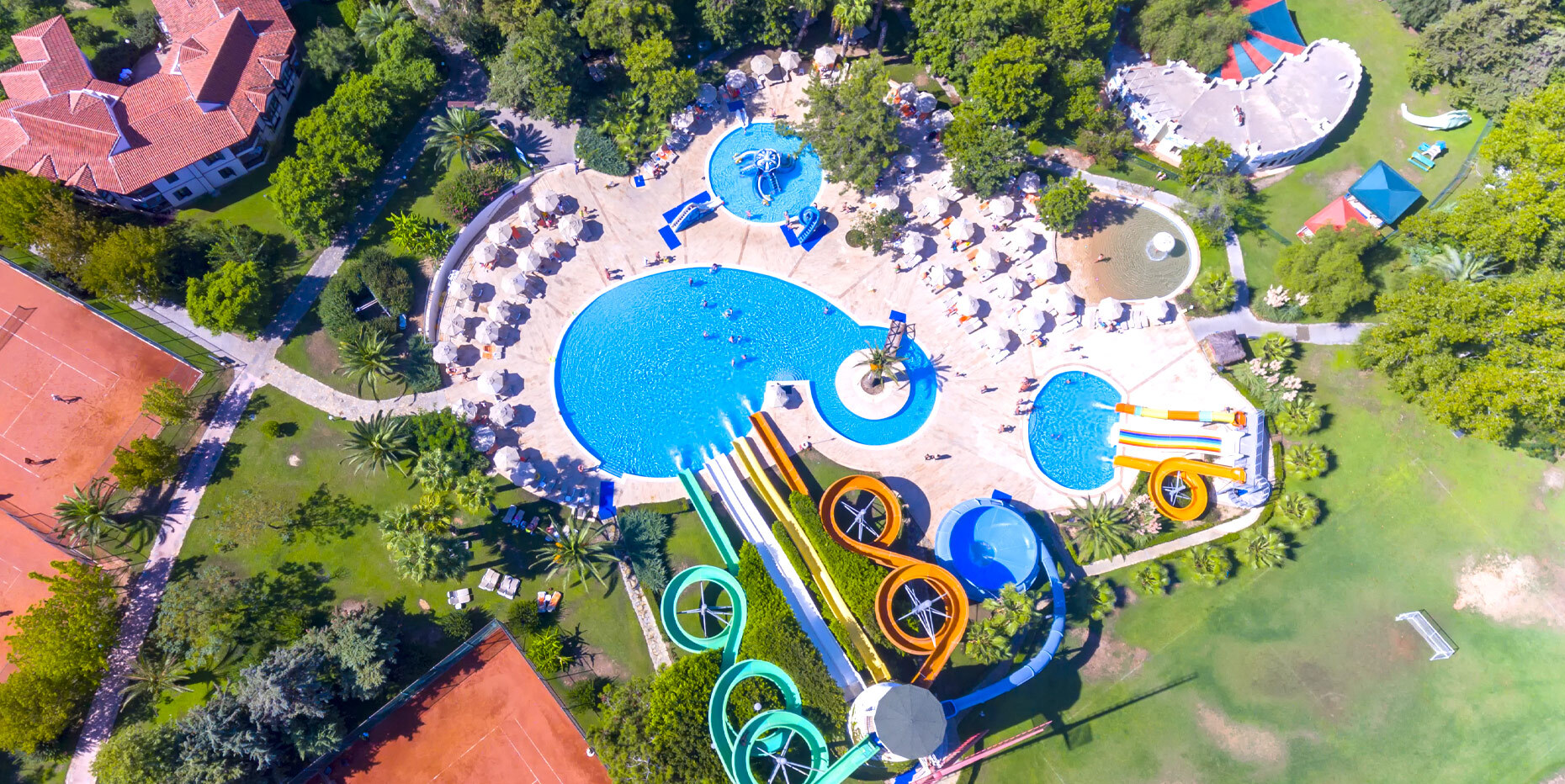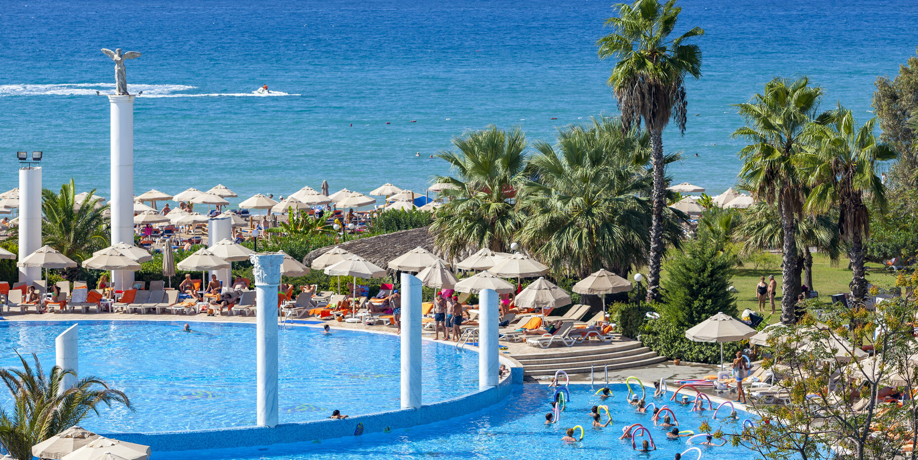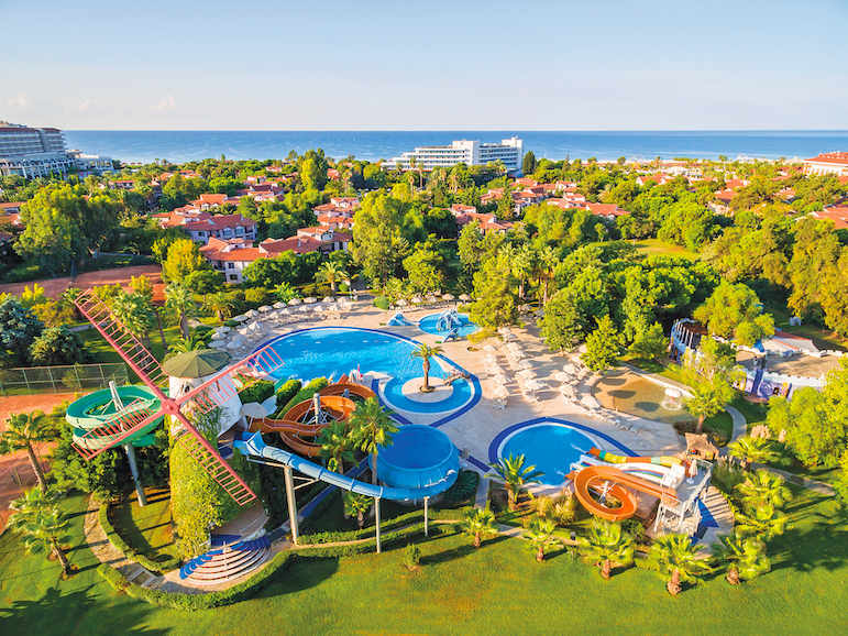 основен ресторант, 12 а-ла-карт ресторанта, 9 бара, 5 басейна, 3 вътрешни басейна, аквапарк с 11 пързалки, дискотека, СПА център, турска баня, сауна(био, руска, класическа), спортен център (футбол, тенис, голф, езда), конферентна зала, амфитеатър, анимация, WI-FI. Безплатни услуги: турска баня, сауна, фрешове на закуска, анимация, тенис на маса, дартс. Платени услуги: тенис корт, телефон и факс, магазини, билярд, моторни водни спортове, За децата: детски басейн, 6 детски пързалки, анимация, мини клуб (4-12г.), мини диско, тийн клуб(13-16г.). Плаж: собствен, пясъчен. Чадъри и шезлонги на плажа и басейна - безплатно.