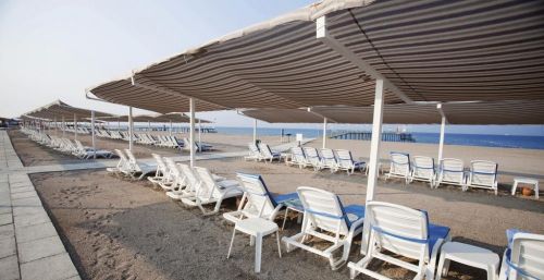 Собствен, пясък/чакъл. Кей. Бар на плажа - безплатно. При басейна и на плажа: чадъри, шезлонги, матраци – безплатно. Плажни кърпи – безплатно.