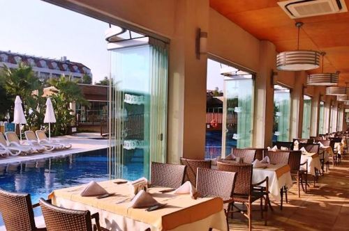 Хотелът разполага с открити и закрити басейни, които са специално предназначени за всяка възрастова група. 2 басейна за деца (30 и 60 кв.м), основен басейн, който включва 3 пързалки за възрастни и 2 за деца и още два други басейна. Шикозни и удобни шезлонги, плажни чадъри, душове и съблекални са разположени удобно, в непосредствена близост до басейните.