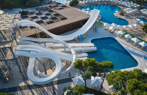 Основен ресторант, диетично меню, вегетарианско меню, 8 a - лa - карт ресторанта(турски, китайски, рибен, италиански, мексикански, гръцки, френски), 12 бара, чайна и бирария, 4 открити басейна, закрит басейн, 4 водни пързалки, SPA – център, фризьор, магазини, сауна, турска баня, парна баня, фитнес , аеробика, тенис на маса, дартс, мини-голф, 4 тенис корта с тартаново покритие, наем на тенис ракети и топки, анимация, дискотека , безжичен интернет (в лобито).
