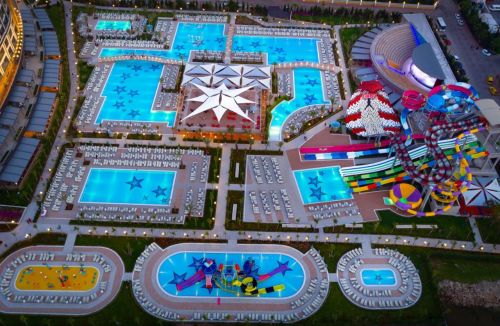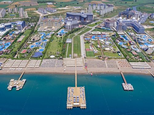 Основен ресторант, 9 а-ла-карт ресторанта (рибен, турски, италиански, средиземноморски, азиатски, суши, барбекю ресторант, мексикански, испански – срещу заплащане и с предварителна резервация, съгласно концепцията на хотела), снек ресторанти, бистро, сладкарница, food корнер, 9 бара, 4 открити и 1 закрит басейн, аквапарк, лунапарк, амфитеатър, професионални музикални и танцови вечерни програми, тематични партита(1 път седмично), дискотека, СПА център, магазини, 11 конферентни зали, паркинг.