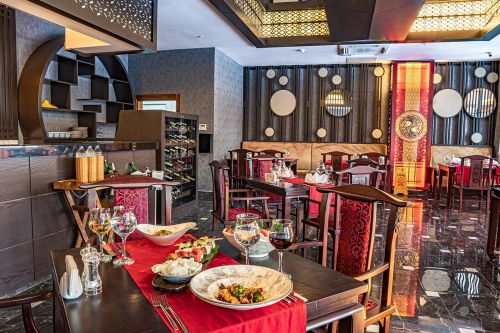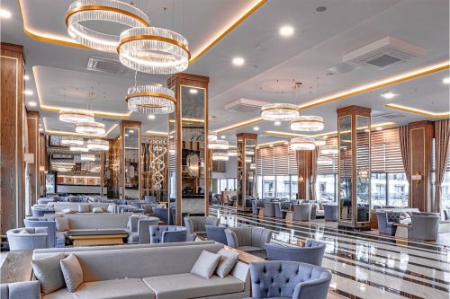Основен ресторант, 2 а-ла-карт ресторанта (италиански и далекоизточен - 1 безплатно посещение на 1 от ресторантите при минимум 7 нощувки, с предварителна резерваия), 2 снек ресторанта, сладкарница, станция за сладолед и палачинки, 5 бара, кафетерия, диско бар, открит и закрит (отопляем) басейн, аквапарк, СПА център, магазини, конферентна зала.