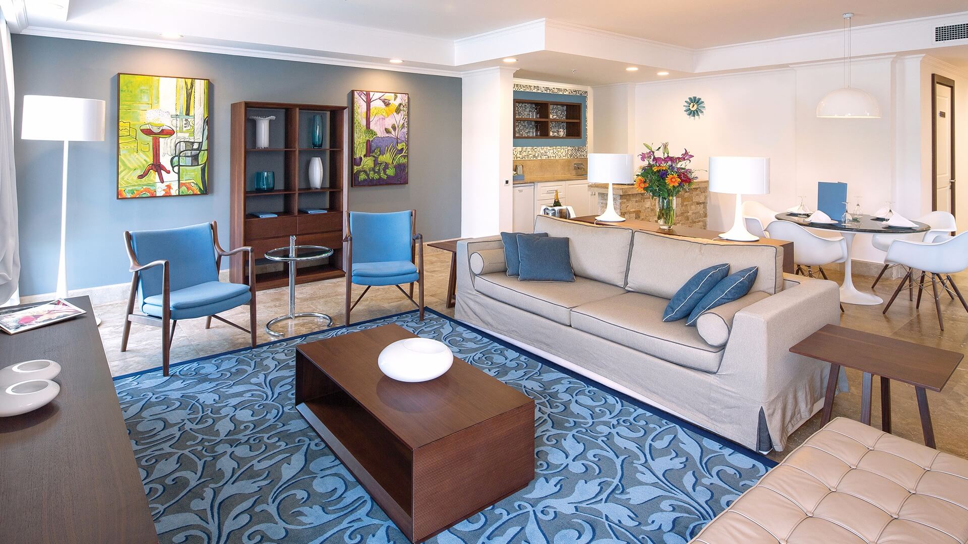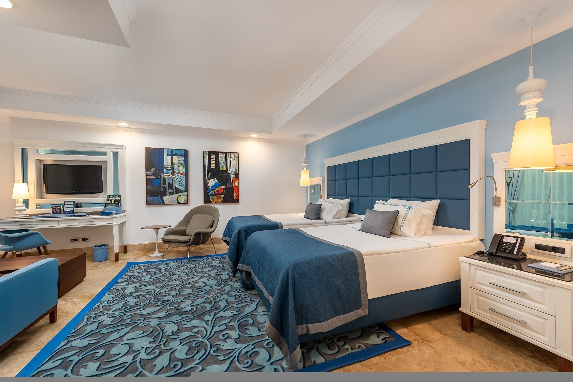 Хотелът разполага с общо 33 двуетажни вили, всички с вход към общия басейн с морска вода, 26 Azure Villas (с 2 спални помещения), 7 Azure Villas (с 3 спални помещения). Всички стаи са оборудвани с климатик, телевизор, телефон, 2 бани с вана/душ, сешоар, халат и пантофи, ютия, минибар (безплатен), сейф (срещу депозит), кафе Lavazza/чай. Почистване на стаите - всеки ден, смяна на спално бельо и кърпи - 3 пъти седмично.