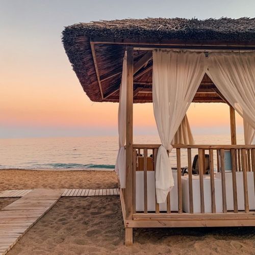 Собствен, пясъчен, със сертификат Син флаг. Чадъри и шезлонги на плажа и при басейна - безплатно. Плажни кърпи - безплатно.