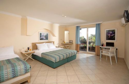 Хотелът разполага с общо 478 стаи: 25 Standard Rooms with Sea View (22 кв.м, тераса или френски балкон), 198 Standard Rooms with Pool and Garden View: Bathroom (22 кв.м, тераса или френски балкон), 9 Superior Rooms with Sea View (28 кв.м, (22 кв.м, тераса или френски балкон), 25 Superior Rooms with Garden View:(28 кв.м, балкон), 11 Family Rooms with Sea View (2 стаи, 1 баня, тераса или френски балкон, 33 кв.м), 171 Family Rooms with Pool and Garden View(2 стаи, 1 баня, тераса или френски балкон, 33 кв.м), 14 Pet-Friendly Rooms: (28 кв.м, тераса или френски балкон, удобствата за домашни любимци: храна, купа за вода, лакомства и торби за отпадъци). Всички стаи са оборудвани с климатик, телевизор, телефон, баня с душ, сешоар, мини бар (платен), сейф (платен), тераса или френски балкон. Почистване на стаите - всеки ден, смяна на спалното бельо и кърпите - 2 пъти в седмицата.