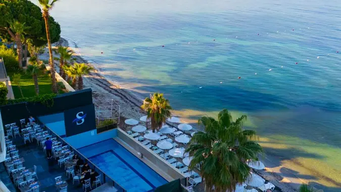 Хотелът се намира на 80 км от летише Измир, 121 км. от летище Милас, на 4 км. от центъра на Кушадасъ, на 50 м. от брега на морето. Построен на площ от 15 000 кв.м. Последно реновиран през 2018 г.
