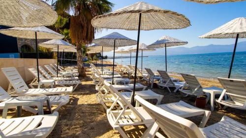 Плаж – собствен, пясъчно-чакълест. Чадъри и шезлонги на плажа и при басейна – безплатно.