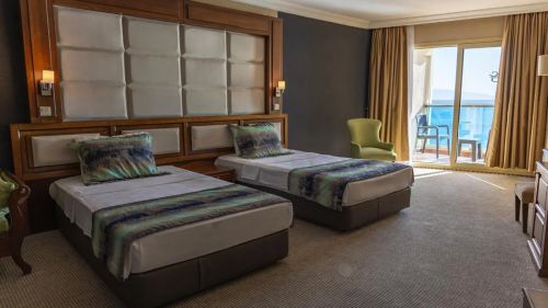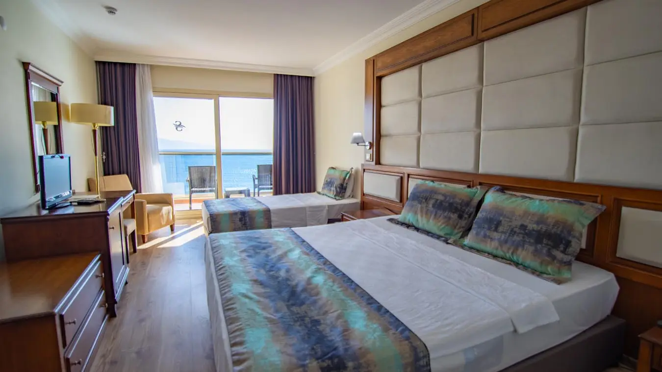 Хотелът разполага с общо 97 стандартни стаи (27 кв.м), от които 16 без балкон, 18 с изглед градина, 62 с изглед море. Всички оборудвани с климатик, телевизор, телефон, баня с душ или вана, сешоар, минибар (платен), сейф (платен). Почистване на стаите – всеки ден, смяна на бельото и кърпите – 2 пъти в седмицата.