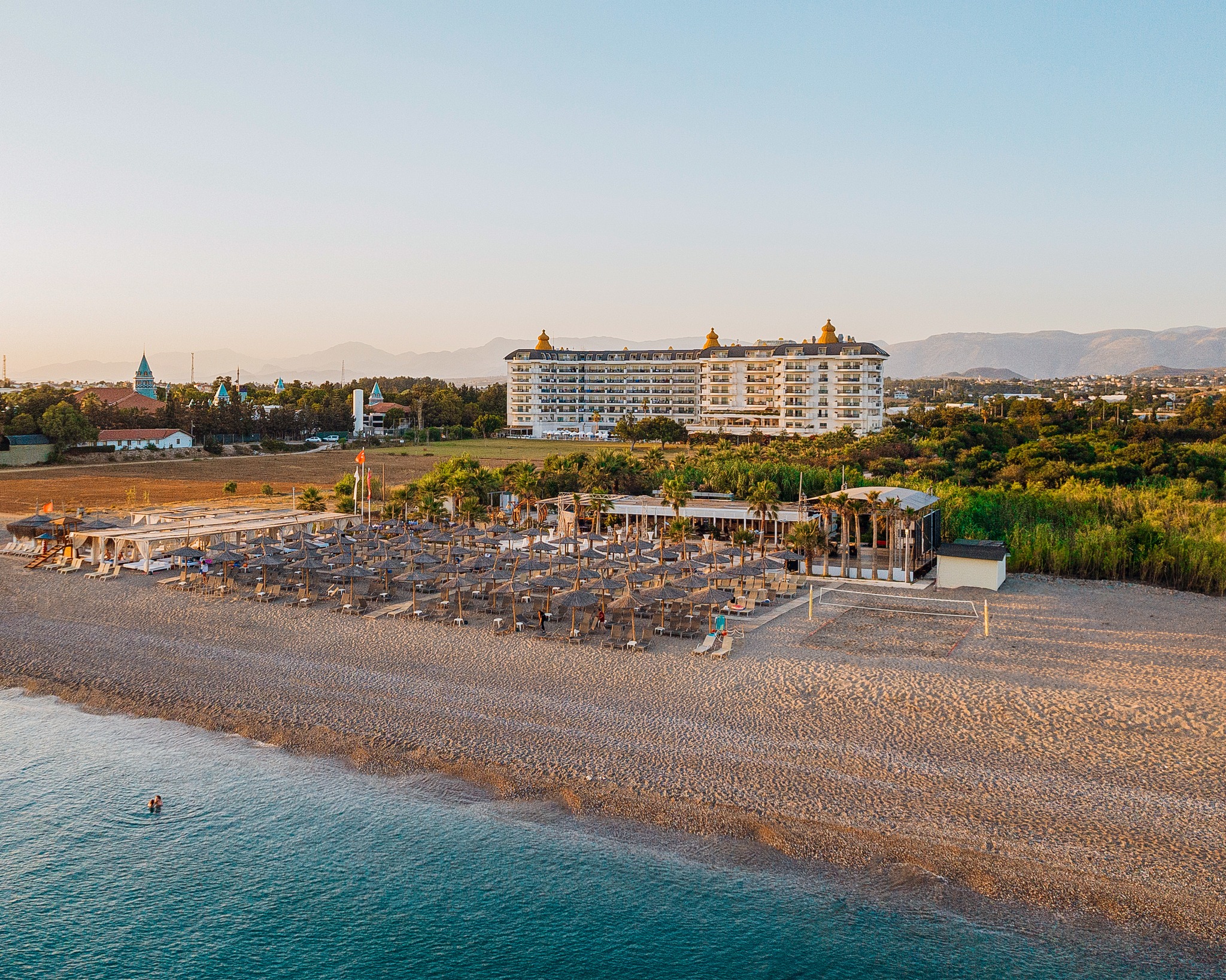 Хотелът е разположен на 90 км. от летище Анталия, на 15 км. от Сиде и 10 км. от центъра на Манавгат, на брега на морето.Построен през 2014г., с обща площ 10 000 м2, реновиран през 2019 г. Хотелът не приема домашни любимци.