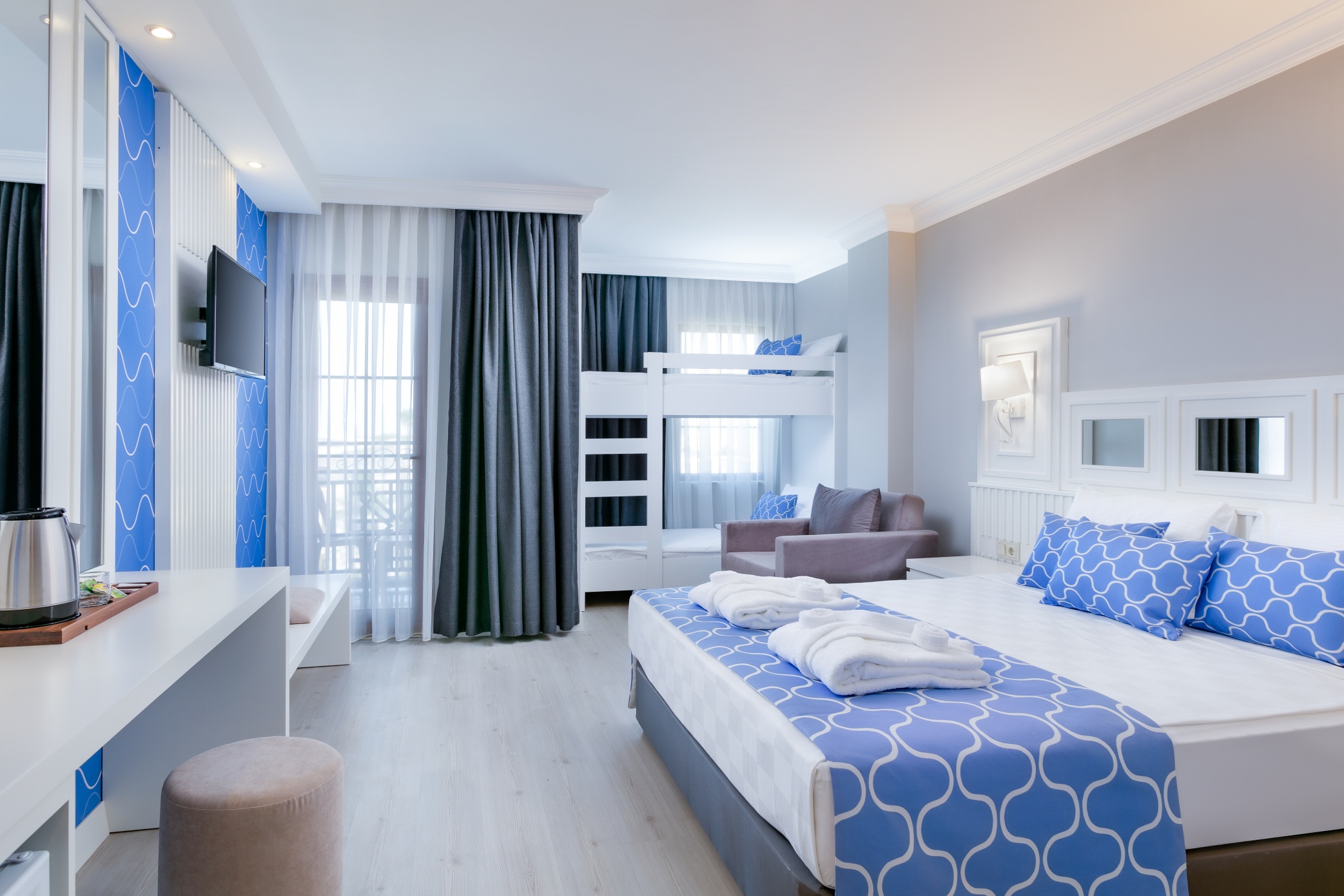 Безплатни услуги: турска баня, сауна, баскетбол, дартс, тенис на маса, тенис, плажен волейбол, аеробика, водна топка,