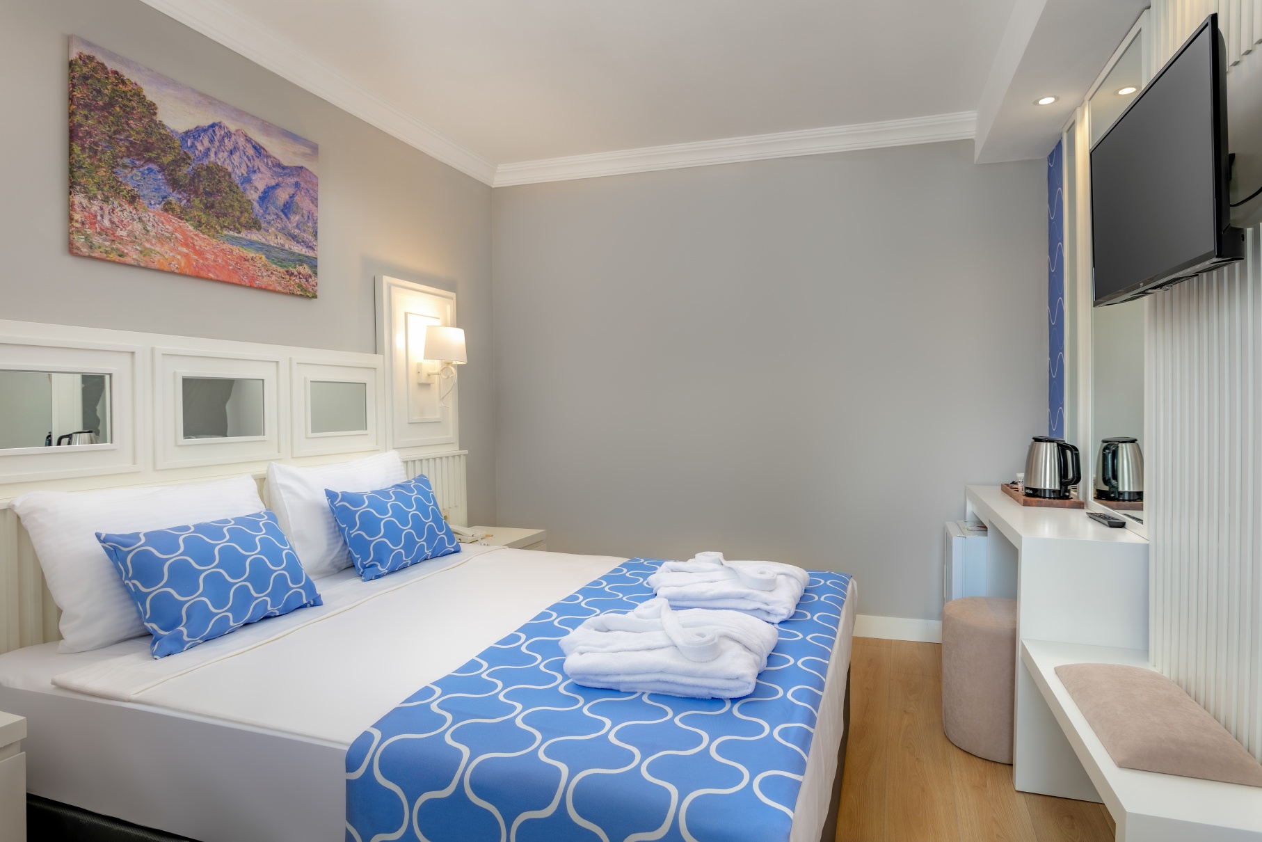 Хотелът раполага със стандартни стаи (разположени в анекс сгради - 23 м2), хотелски стаи (разположени в основната сграда - 25 м2), стаи с двуетажно легло (25 м2), фамилен апартамент (40 м2) и екзекютив апартамент (40 м2). Всички стаи са оборудвани с телевизор, климатик, мини бар, телефон, сейф, сешоар.