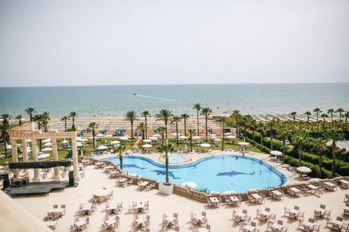 Основен ресторант, 3 а-ла карт ресторанта (турски, италиански и рибен), лоби бар, бар при басейна,открит басейн(376 кв.м.), закрит басейн (80кв.м.), тенис на корт, фитнес център, сауна, турска баня, масаж, салон за красота, анимация, СПА център, водни спортове За децата: детска площадка, 2 детски басейна, 3 водни пързалки, мини клуб (4-12г.), детско столче в ресторанта, детегледачка (срещу заплащане) Плаж: собствен. Чадъри, матраци и шезлоги на плажа и при басейна - безплатно.