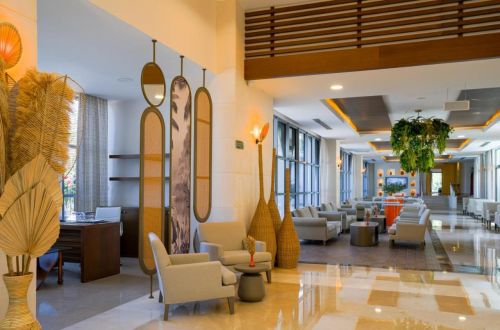 Основен ресторант, 2 а-ла-карт ресторанта (рибен, азиатски – 1 безплатно посещение на 1 от ресторантите при минимум 5 нощувки, с предварителна резервация), снек ресторант на плажа, сладкарница, 4 бара, дискотека, 3 открити басейна, 1 закрит басейн (отопляем през определение от хотела периоди), 2 водни пързалки, СПА център, магазини, 1 конферентна зала.