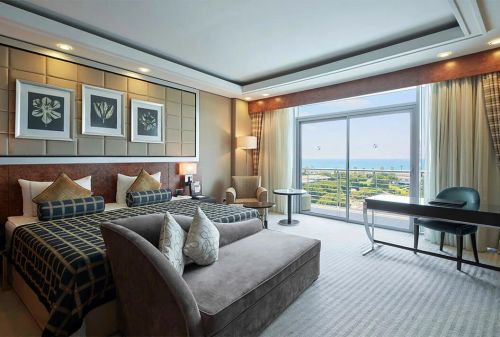 Хотелът разполага общо с 502 стандартни стаи и 63 фамилни стаи. Всички стаи са оборудвани с: климатик, сателитна телевизия, телефон, баня с душ или вана, сешоар, минибар (безплатно), балкон, интернет. Почистване на стаите – всеки ден.